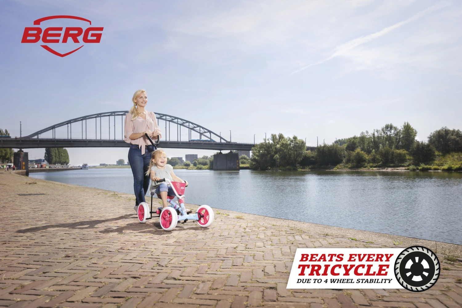 De BERG Buzzy Bloom is er nu ook als BERG Buzzy 2-in-1.Doordat dit model uitgerust is met een schakelbare vrijloop, een duwstang en een gebruiksvriendelijk stuurslot is de stabiele skelter nu ook te gebruiken als duwauto waardoor je met je kind gemakkelijk en veilig op pad kunt.