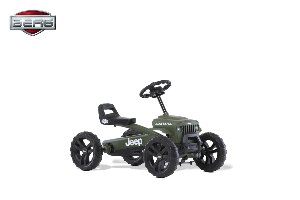 Met zijn Jeep gril, zijn solide motorkap, zijn zeldzame stuur en zijn off-road banden biedt deze Jeep Buzzy Sahara onvergetelijk rijplezier. Op deze Jeep kan je kind elk terrein de baas zijn. Het direct drive systeem zorgt dat trappen soepel en licht gaat. Met deze Sahara scheur je door plassen, ploeg je over zandvlaktes en trotseer je bosachtige ondergronden zonder dat het moeite kost!