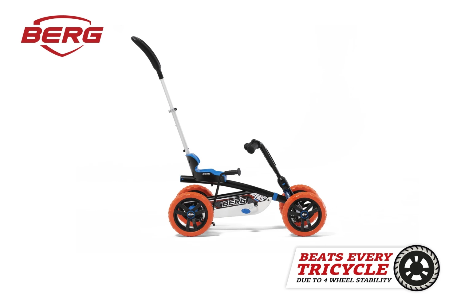 De BERG Buzzy Nitro is nu ook als BERG Buzzy 2-in-1 leverbaar. Deze Buzzy Nitro is uitgerust met een schakelbare vrijloop, een duwstang en een gebruiksvriendelijk stuurslot. Hierdoor is de stabiele skelter nu ook te gebruiken als duw-skelter waardoor je met je kind gemakkelijk en veilig op pad kunt.