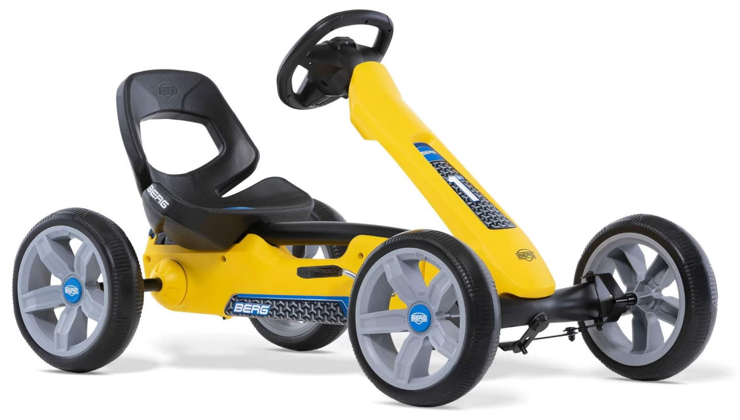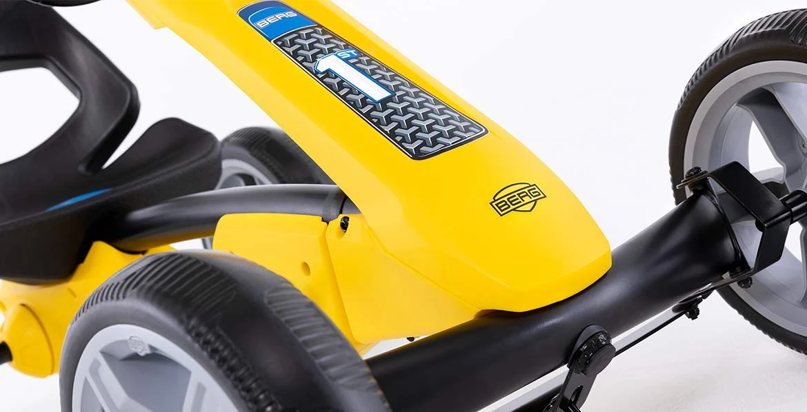 Door het aantrekkelijke en sportieve design van de Reppy Rider, wil elk kind de buurt hier wel op ontdekken. Het opvallende sportstuur, de nooit lek rakende EVA 10” inch banden, de stoere kuipstoel en de schommel-as maken skelterrijden ongekend leuk. De BERG Reppy is door de lage kuipstoel de eerste skelter voor jonge kinderen met échte, lage skelterinstap.